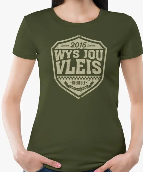 Make a bold statement with the Boerboel Ladies Premium Cotton T-Shirt in Printed Green “Wys jou vleis”. Crafted from premium cotton for ultimate comfort, this t-shirt features a vibrant green color that stands out. The playful “Wys jou vleis” print adds a touch of humor and cultural pride to your wardrobe, celebrating South African heritage in a modern context. Designed with a classic crew neckline and short sleeves, it offers a timeless silhouette that pairs effortlessly with jeans or shorts for casual outings. Whether you’re relaxing at home or exploring the outdoors, this t-shirt combines comfort, style, and a sense of cultural identity.