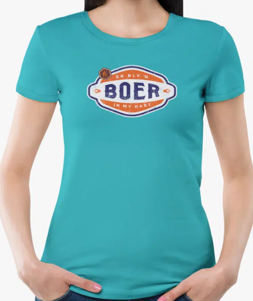 Elevate your casual wardrobe with the Boerboel Ladies Premium Cotton T-Shirt in Printed Light Blue “Boer”. Crafted from premium cotton, this t-shirt offers exceptional comfort and a soft feel against the skin. The light blue color exudes tranquility, while the bold “Boer” print celebrates cultural pride with a modern twist. Designed with a classic crew neckline and short sleeves, it ensures a timeless silhouette that effortlessly complements jeans or shorts for everyday wear. Whether you’re relaxing at home, running errands, or enjoying outdoor activities, this t-shirt combines comfort, style, and a sense of identity that resonates with South African heritage.